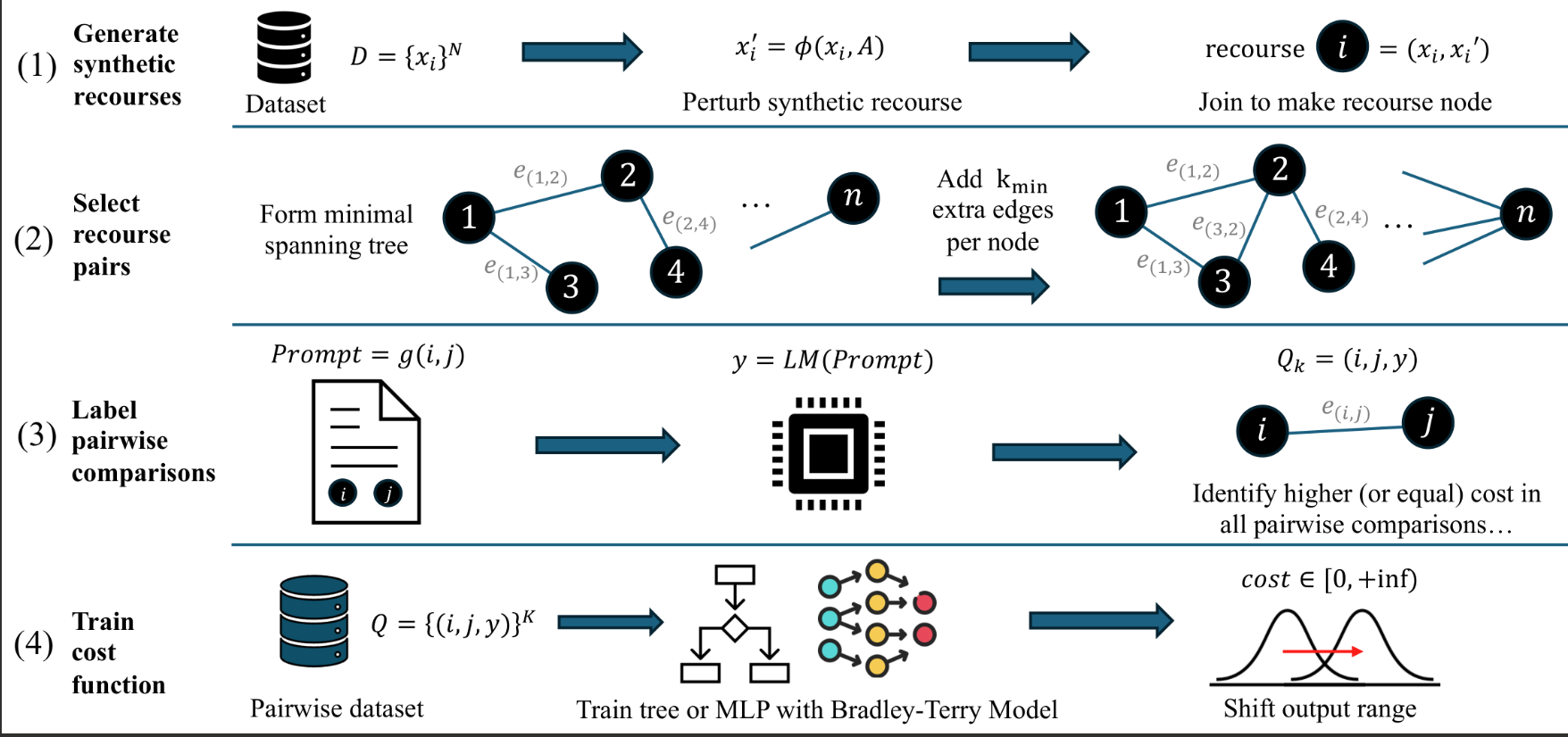 TL;DR: We conduct the first large-scale empirical evaluation of cost functions in algorithmic recourse, discovering that using language models to scale up the Bradley-Terry model works best.